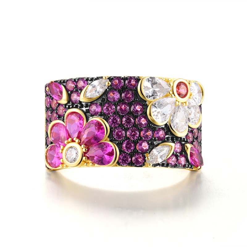 Sterling Silver w/ Yellow Black Plating Ring Created Ruby,White Cubic Zirconia,Created Pink Sapphire (R318234CPRZSC925)