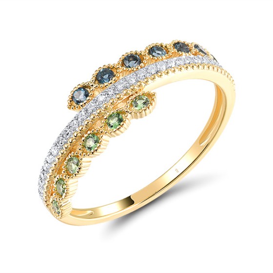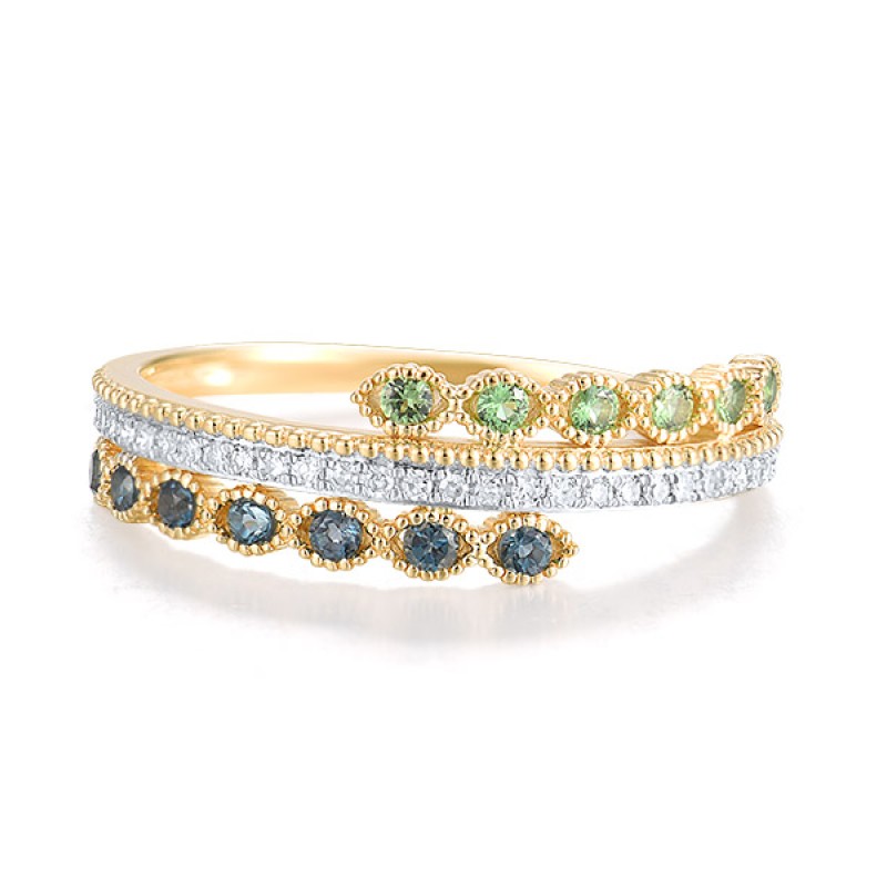 14KYW Ring Diamond,Green Garnet,London Blue Topaz (R320289GLT14KYW)