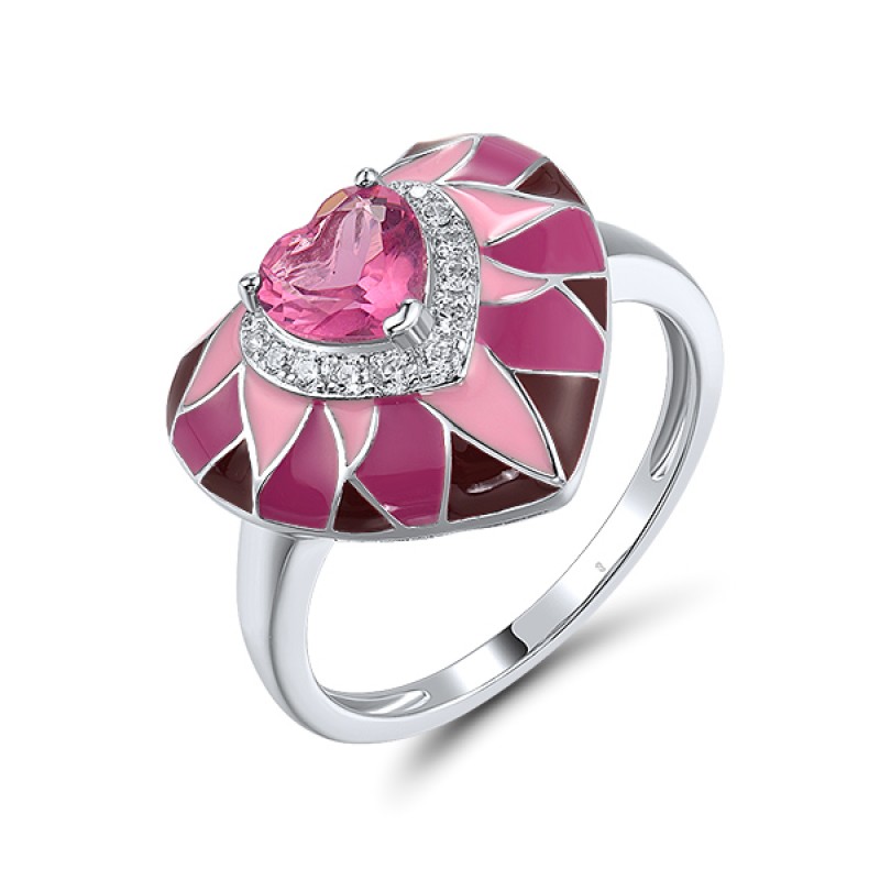 Sterling Silver Ring Enamel,Pink Glass,White Cubic Zirconia (R319874ENASL925)