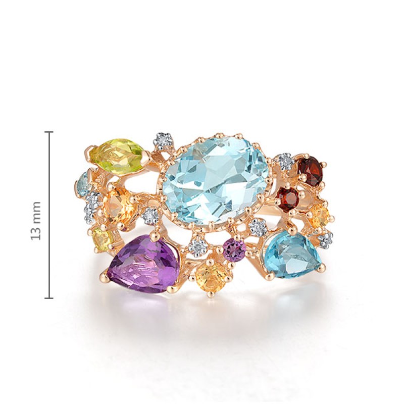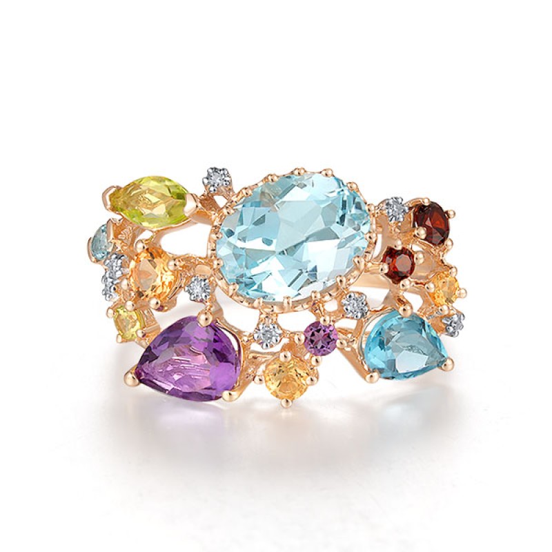 14KRW Ring Amethyst,Blue Topaz (Sky Blue),Blue Topaz (Swiss Blue),Diamond,Garnet,Peridot,Yellow Sapphire (R304414MUL114KRW)