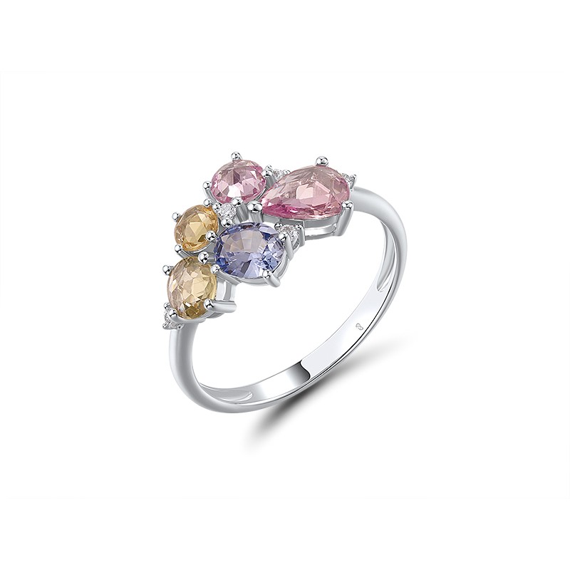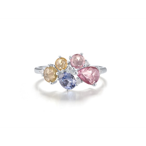 - Diamond:0.05CT 5PC;Pink Sapphire:0.79CT 2PC;Blue Sapphire:0.46CT 1PC;Yellow Sapphire:0.53CT 2PC
