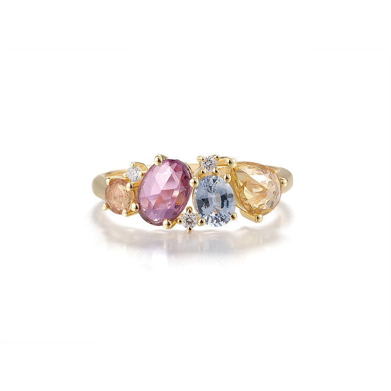 - Diamond:0.05CT 3PC;Pink Sapphire:0.71CT 1PC;Blue Sapphire:0.46CT 1PC;Yellow Sapphire:0.71CT 2PC