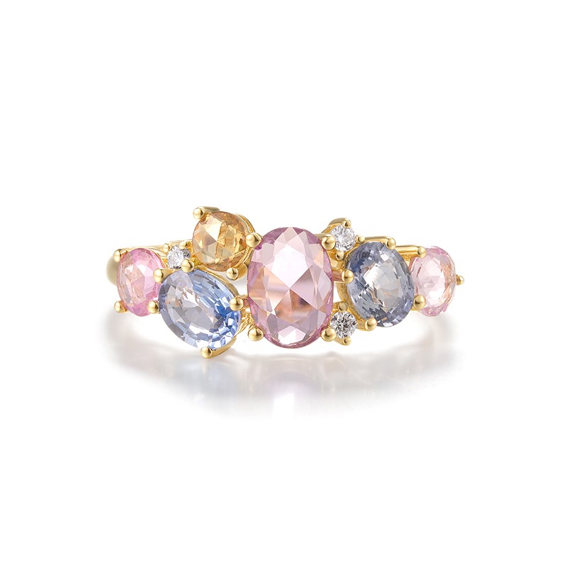- Diamond:0.05CT 3PC;Pink Sapphire:1.22CT 3PC;Blue Sapphire:0.93CT 2PC;Yellow Sapphire:0.18CT 1PC