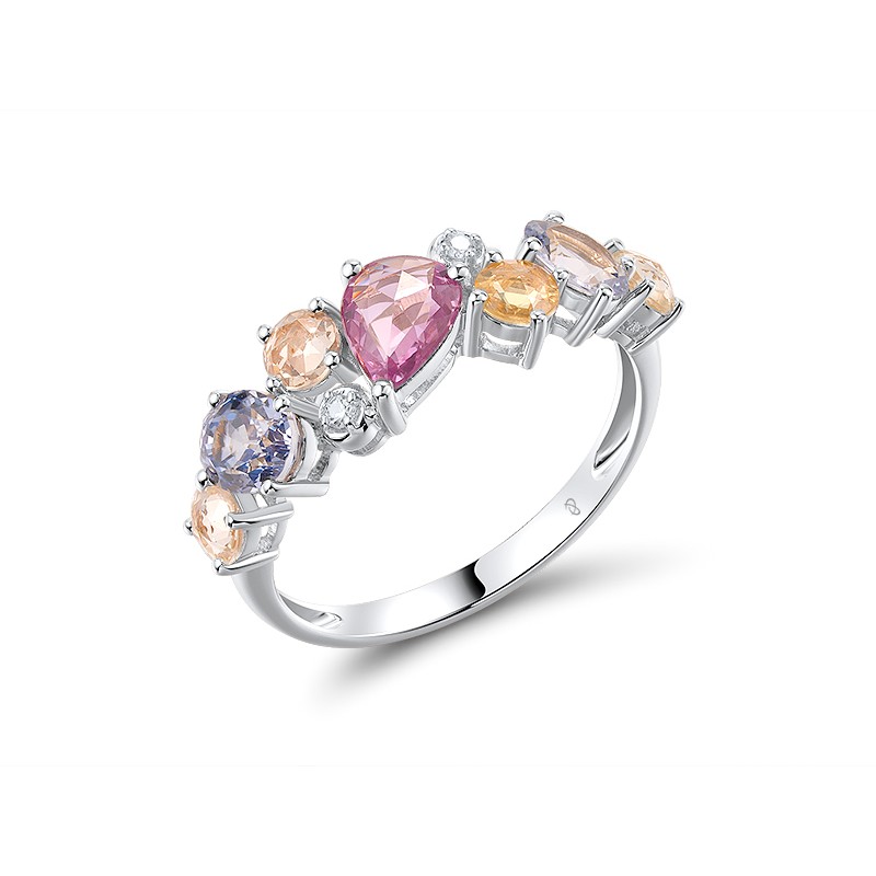 - Diamond:0.02CT 2PC;Pink Sapphire:0.53CT 1PC;Blue Sapphire:0.93CT 2PC;Yellow Sapphire:0.72CT 4PC