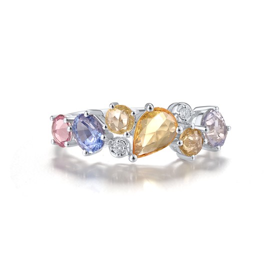 14KW Ring Blue Sapphire,Diamond,Pink Sapphire,Yellow Sapphire (R320986PSYS114KW)