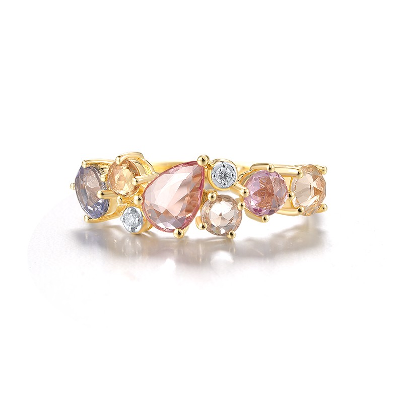 - Diamond:0.02CT 2PC;Pink Sapphire:0.79CT 2PC;Blue Sapphire:0.46CT 1PC;Yellow Sapphire:0.71CT 3PC