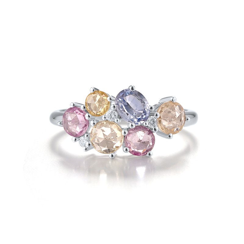 - Diamond:0.05CT 3PC;Pink Sapphire:0.51CT 2PC;Blue Sapphire:0.46CT 1PC;Yellow Sapphire:0.89CT 3PC