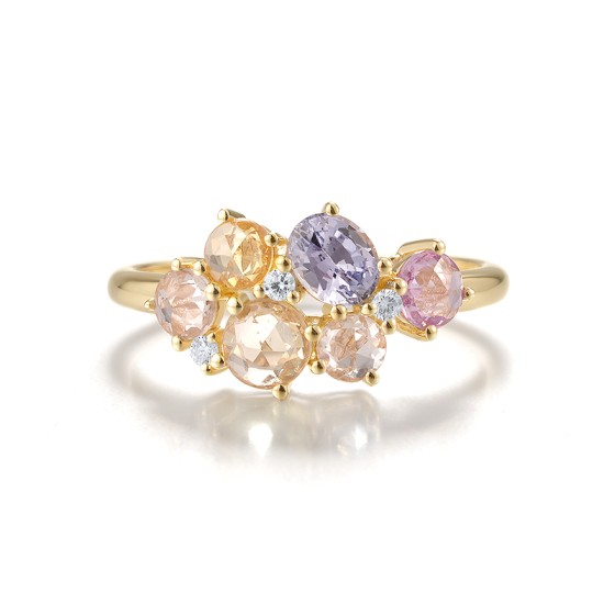 - Diamond:0.05CT 3PC;Pink Sapphire:0.26CT 1PC;Blue Sapphire:0.46CT 1PC;Yellow Sapphire:0.89CT 4PC