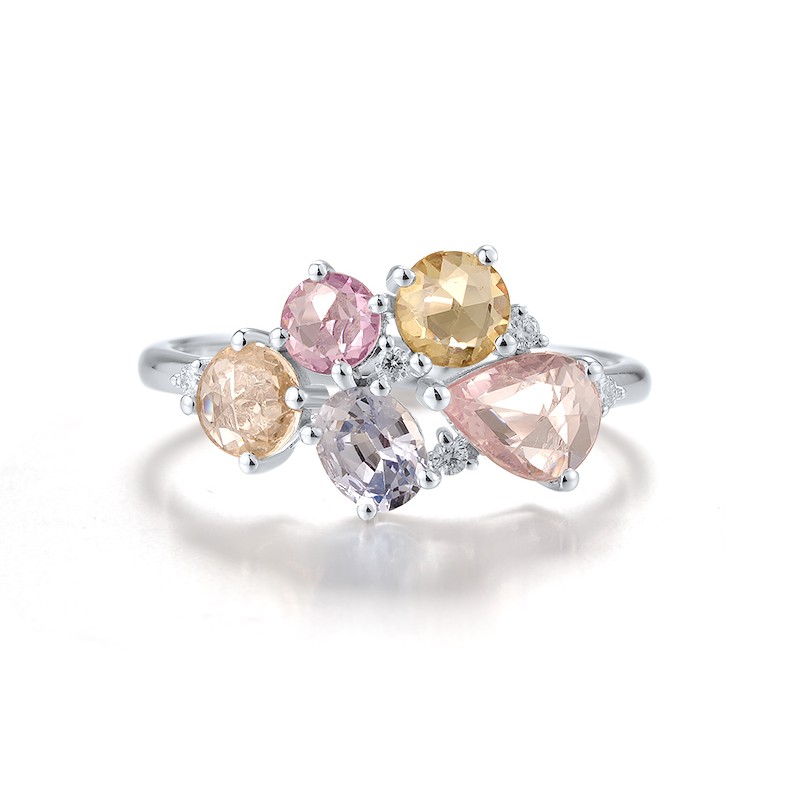 - Diamond:0.05CT 5PC;Pink Sapphire:0.79CT 2PC;Blue Sapphire:0.46CT 1PC;Yellow Sapphire:0.71CT 2PC
