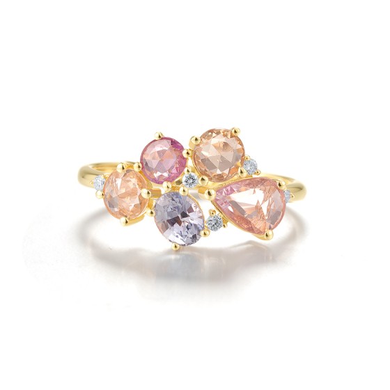 - Diamond:0.05CT 5PC;Pink Sapphire:0.79CT 2PC;Blue Sapphire:0.46CT 1PC;Yellow Sapphire:0.71CT 2PC