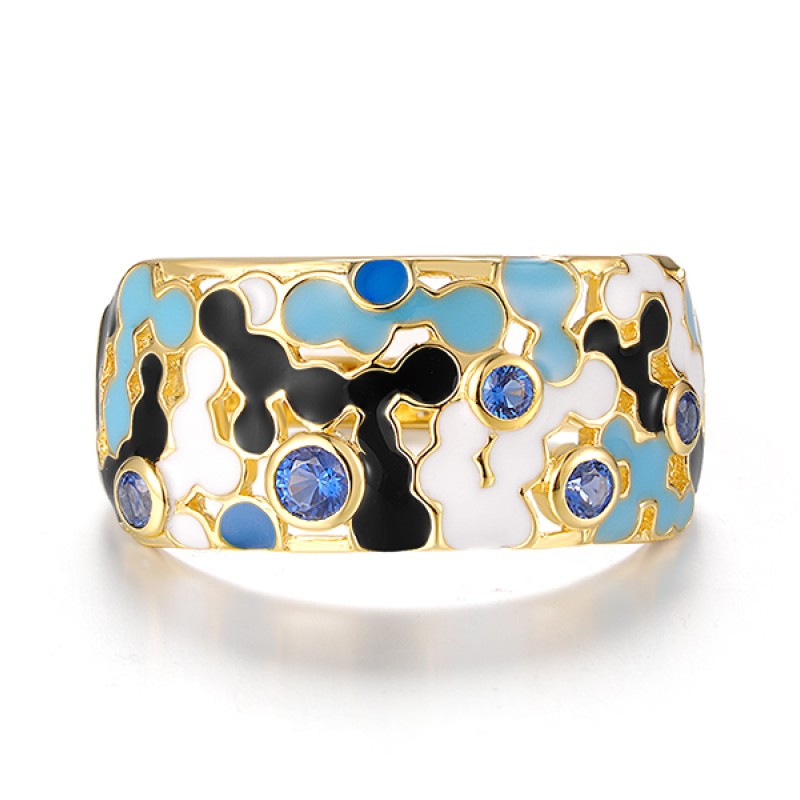 Sterling Silver w/ Yellow Plating Ring Blue Nano Cubic Zirconia,Enamel (R320210ENASY925)