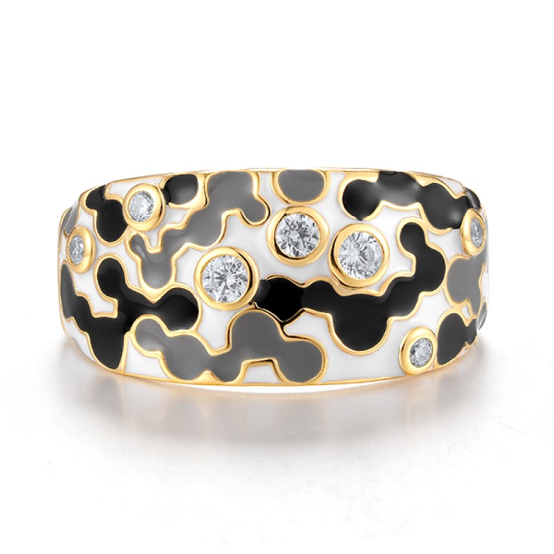 Sterling Silver w/ Yellow Plating Ring Enamel,White Cubic Zirconia (R320209ENASY925)