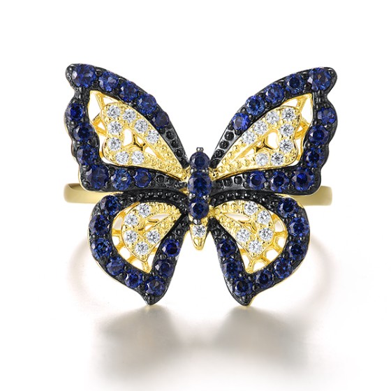 Sterling Silver w/ Yellow Black Plating Ring Created Sapphire,White Cubic Zirconia (R320810CRSZSC925)