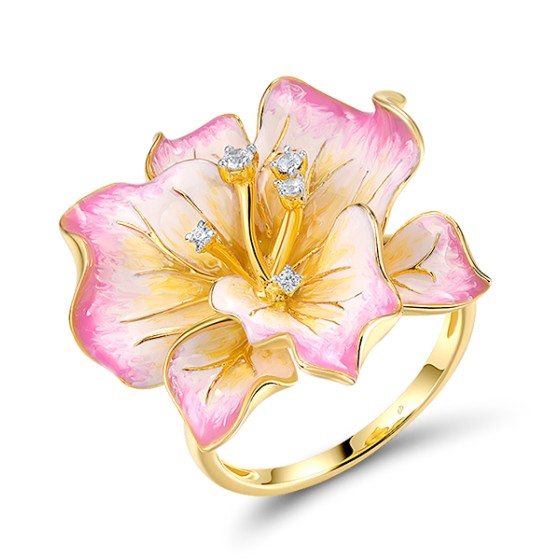 Sterling Silver w/ Ionic Yellow Plating Ring Enamel,White Cubic Zirconia (R313805ENA1SP925)