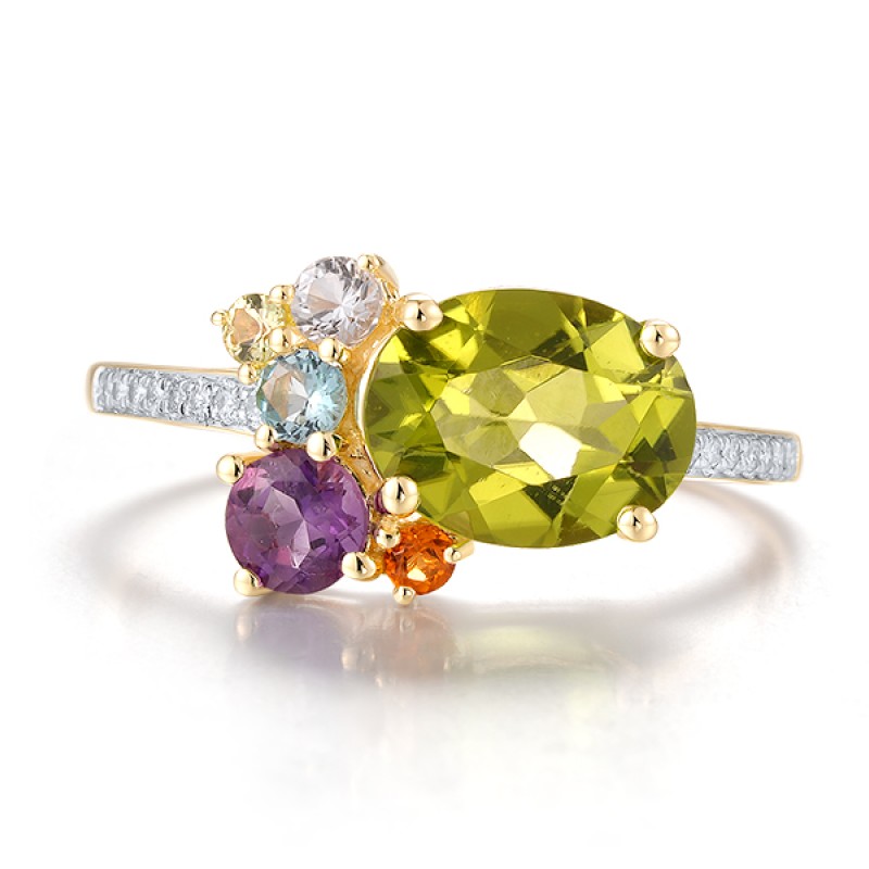 14KY Ring Diamond,Amethyst,Peridot,Blue Topaz (Swiss Blue),White Topaz,Citrine (R321250MUL114KY)