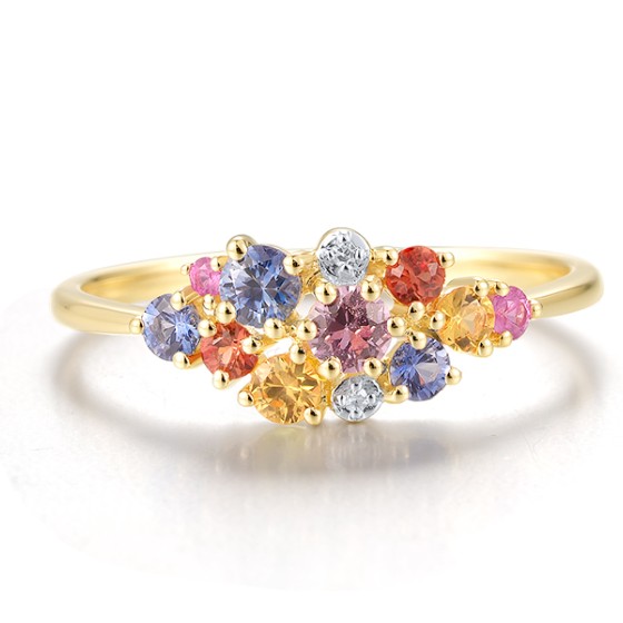 14KYW Ring Orange Sapphire,Pink Sapphire,Blue Sapphire,Yellow Sapphire,Diamond (R321074MUL14KYW)