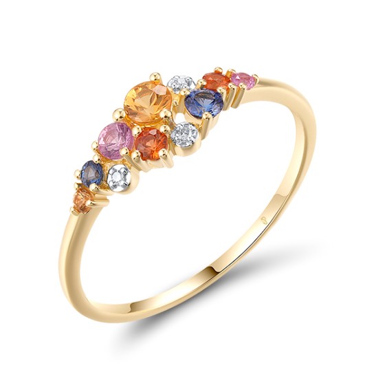 14KYW Ring Pink Sapphire,Blue Sapphire,Yellow Sapphire,Diamond,Orange Sapphire (R321073MUL14KYW)