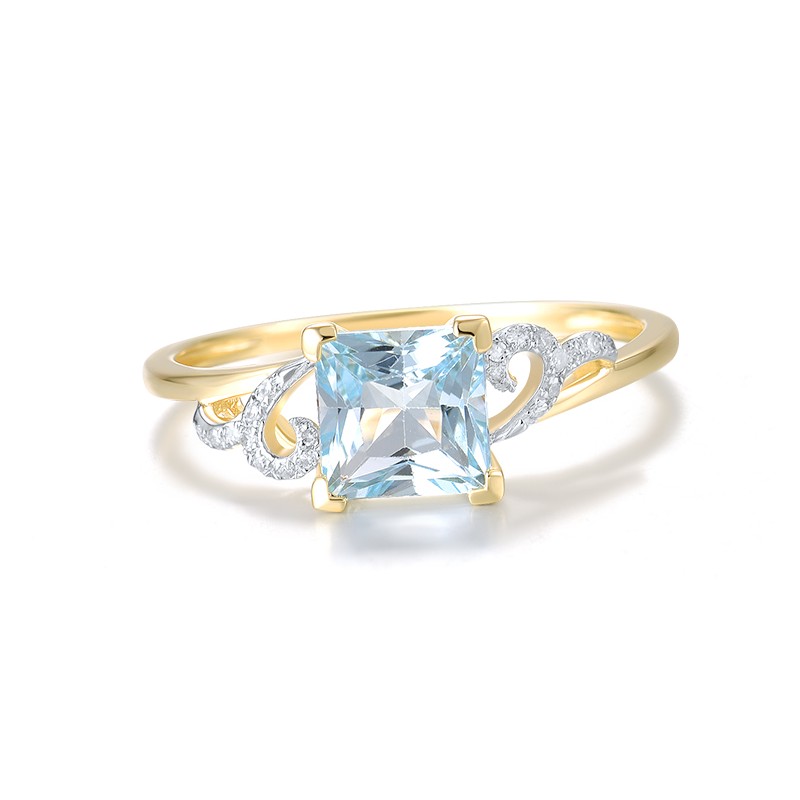 14KYW Ring Blue Topaz (Sky Blue),Diamond (R320936BKT14KYW)