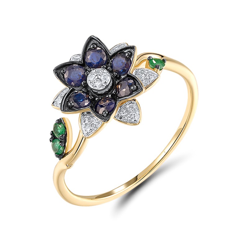 - Blue Sapphire 6pc 0.402ct ,Diamond 22pc 0.066ct ,Emerald 3pc 0.069ct