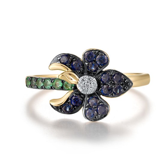- Blue Sapphire 14pc 0.392ct ,Diamond 7pc 0.021ct ,Emerald 6pc 0.120ct