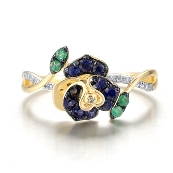 14KYWB Ring Blue Sapphire,Diamond,Emerald (R320686EMS14KYWB)