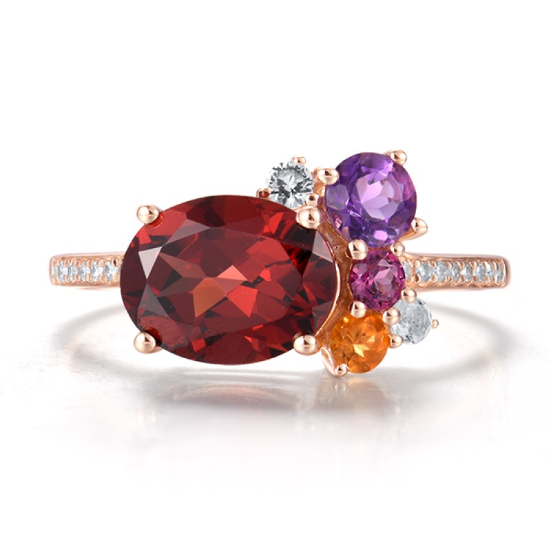 14KR Ring Amethyst,Citrine,Diamond,Garnet,Rhodolite Garnet,White Topaz (R321250MUL14KR)