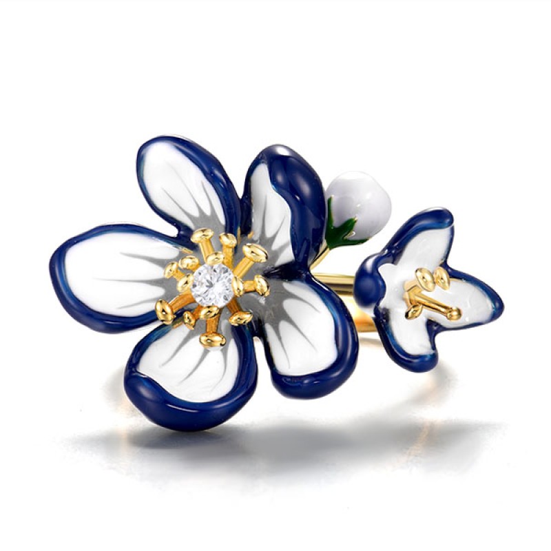 Sterling Silver w/ Yellow Plating Ring Enamel,White Cubic Zirconia (R320024ENASY925)