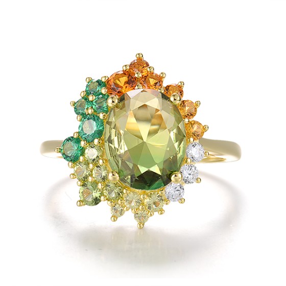 Sterling Silver w/ Yellow Plating Ring Mix Glass,Synthetic Green Spinel,Synthetic Green Spinel ,Synthetic Yellow Spinel,White Cubic Zirconia (R321388MULSY925)