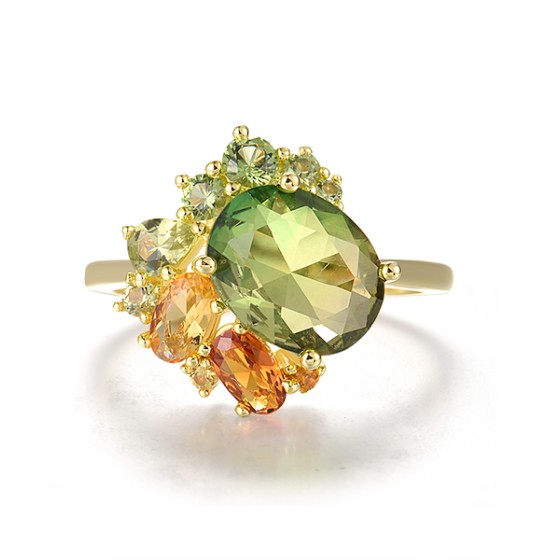 Sterling Silver w/ Yellow Plating Ring Mix Glass,Synthetic Green Spinel,Synthetic Green Spinel ,Synthetic Yellow Spinel (R321389MULSY925)