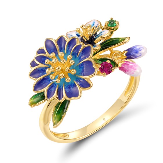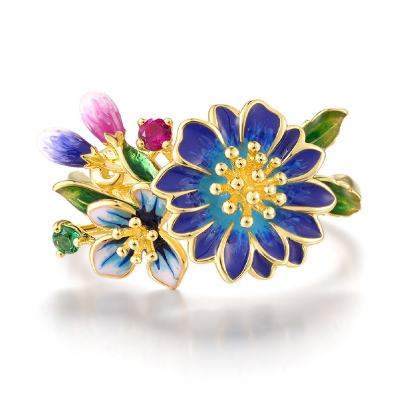 Sterling Silver w/ Yellow Plating Ring Created Ruby,Enamel,Synthetic Green Spinel (R321107ENASY925)