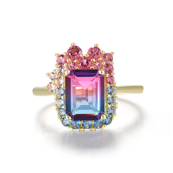 Sterling Silver w/ Yellow Plating Ring Mix Glass,Synthetic Blue Spinel,Synthetic Morgan Spinel,Synthetic Red Spinel (R321391MULSY925)