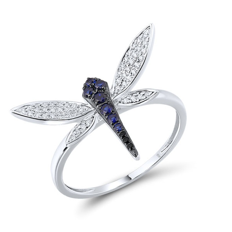 14KWB Black Diamond,Blue Sapphire Ring (R316264BDS14KWB)