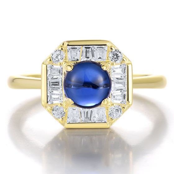 Sterling Silver w/ Yellow Plating Synthetic Blue Spinel,White Cubic Zirconia Ring (R321331BZZSY925)