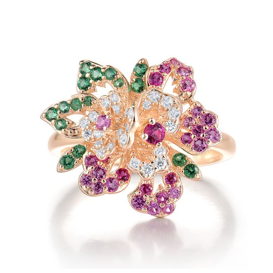 Sterling Silver w/ Rose Plating Multi Colour Stone Ring (R321358MULSR925)