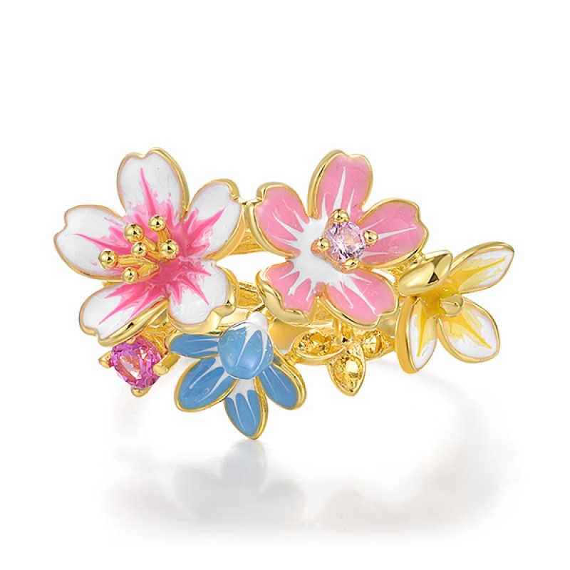 Sterling Silver w/ Yellow Plating Enamel Ring (R321701ENASY925)