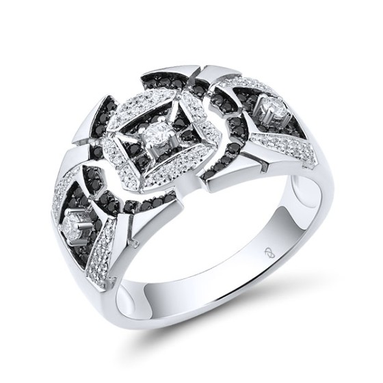 Sterling Silver w/ Black White Plating Ring Synthetic Black Spinel,White Cubic Zirconia (R314659BSNZSK925)