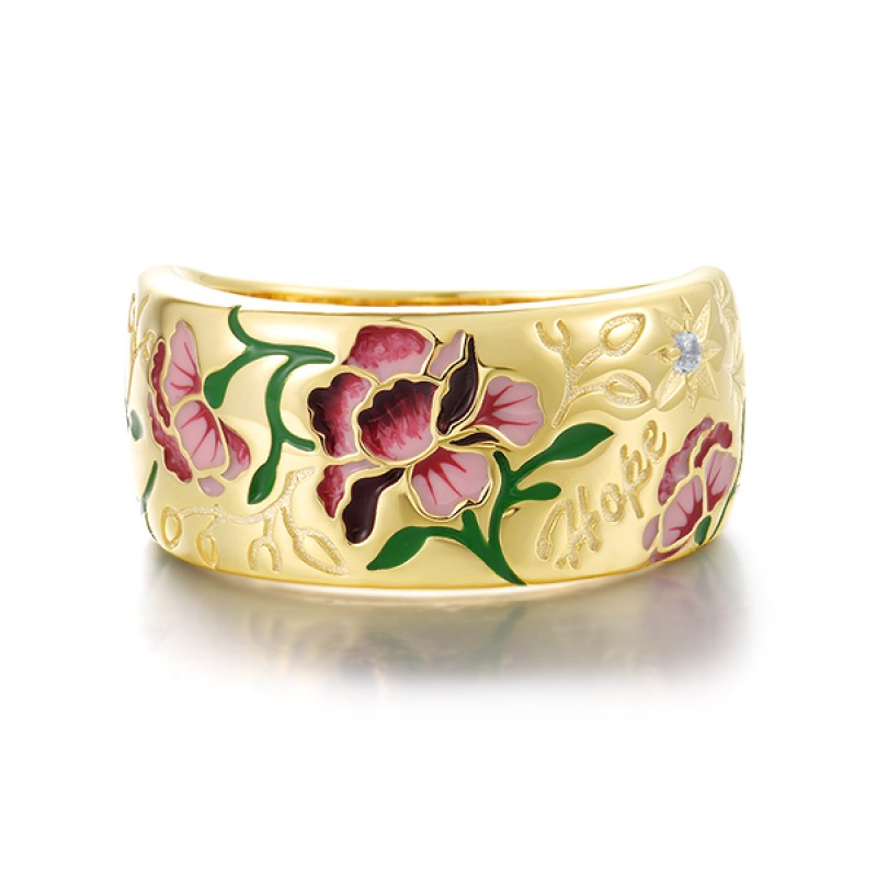 Sterling Silver w/ Yellow Plating Ring Enamel,White Cubic Zirconia (R321967ENASY925)