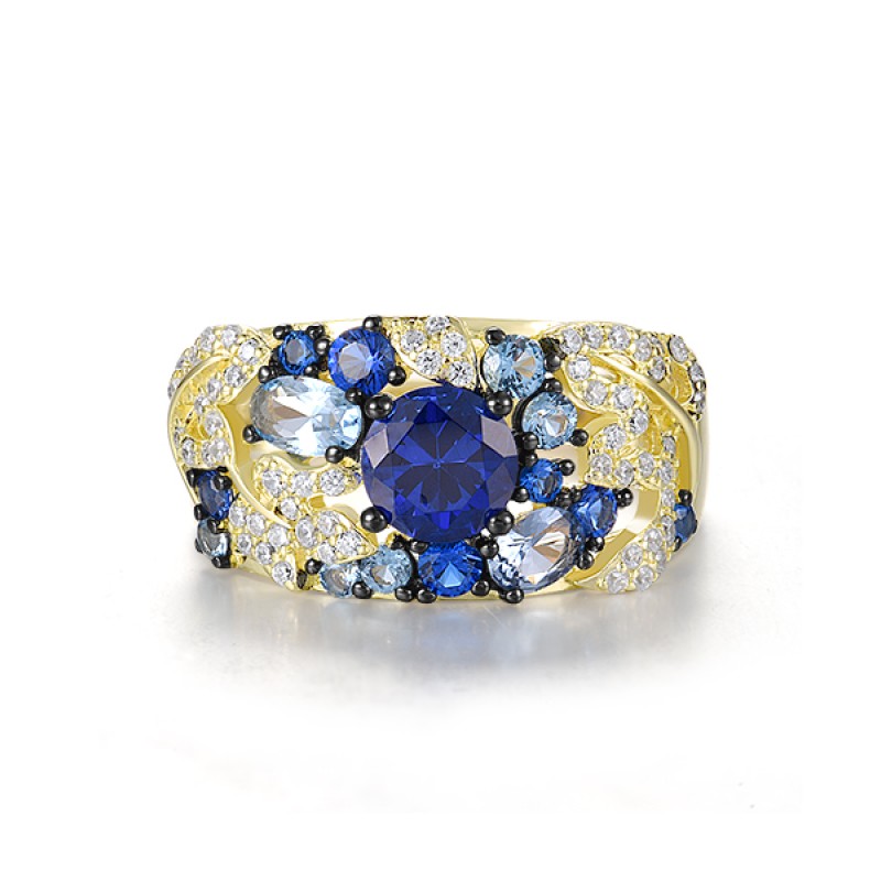 Sterling Silver w/ Yellow Black Plating Ring Synthetic Blue Spinel,White Cubic Zirconia (R321338BLZSC925)