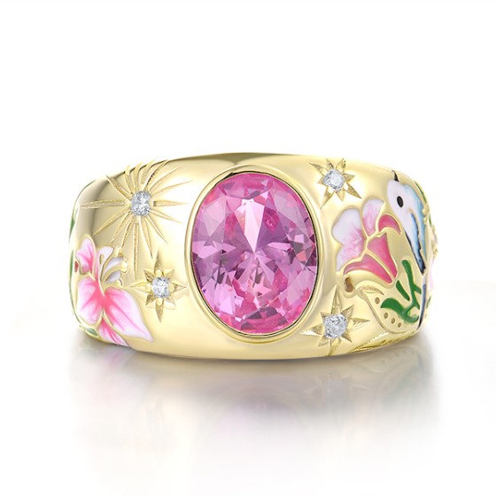 - Created Pink Sapphire:1PC 2.44CT;Enamel:0.10CT 0.1000CT;White Cubic Zirconia:4PC 0.09CT