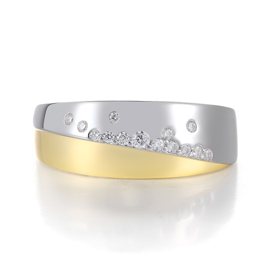 Sterling Silver w/ Ionic Yellow Plating Ring White Cubic Zirconia (R320491WCZSP925)
