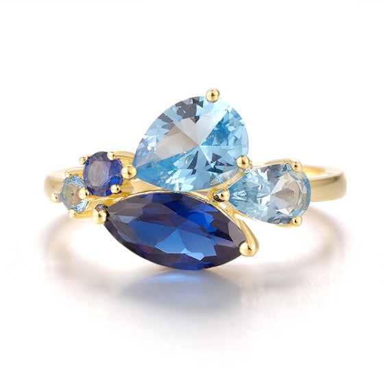 Sterling Silver w/ Yellow Plating Ring Synthetic Blue Spinel (R321098BNNZSY925)