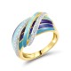 Sterling Silver w/ Ionic Yellow Plating Ring Enamel,White Cubic Zirconia (R320350ENASP925)