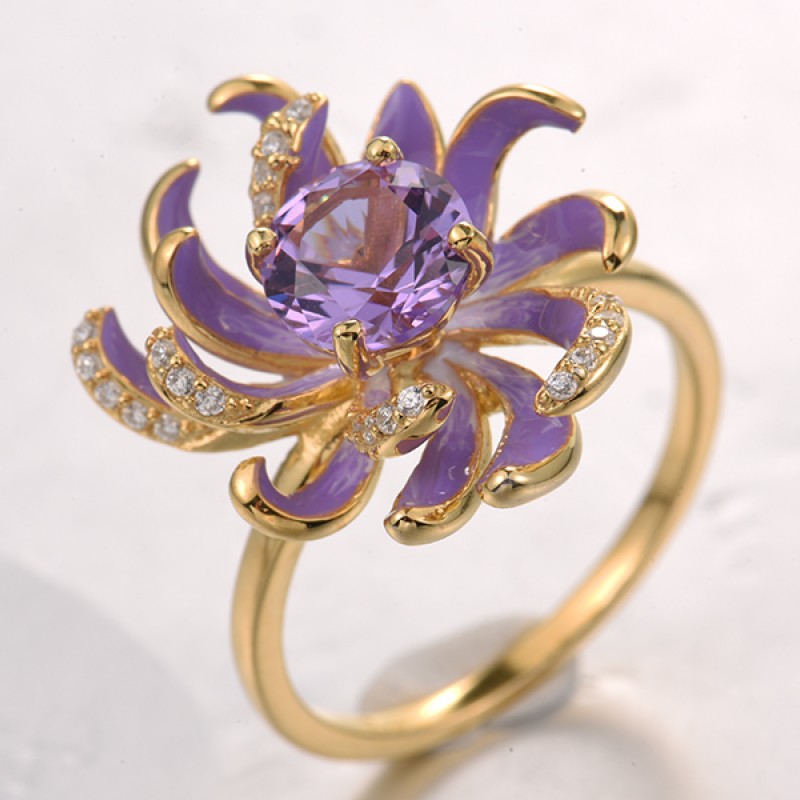 Sterling Silver w/ Yellow Plating Ring Enamel,Synthetic Purple Spinel,White Cubic Zirconia (R321556ENASY925)