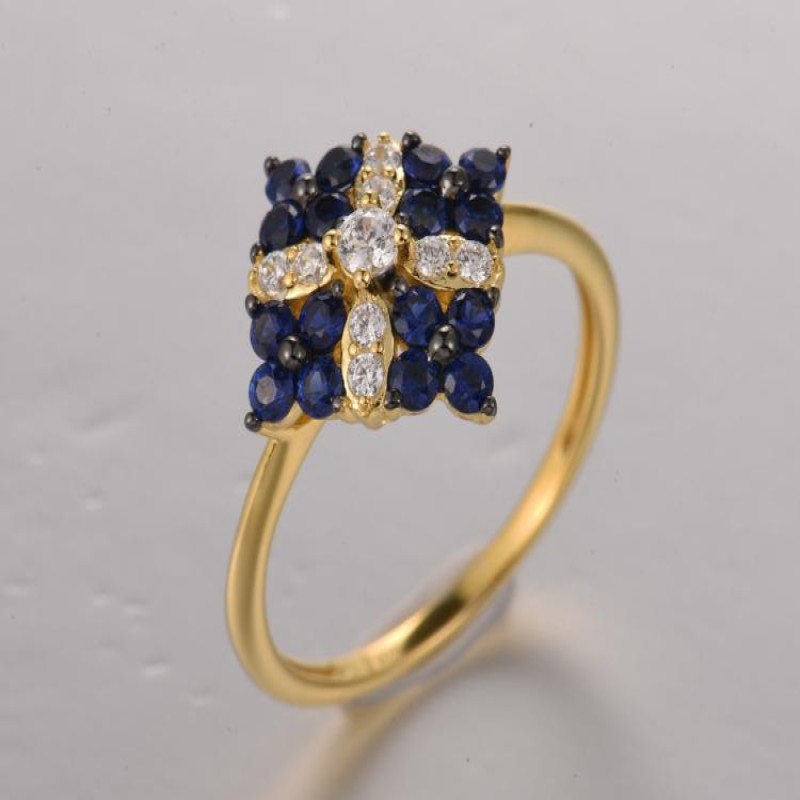 Sterling Silver w/ Yellow Black Plating Ring White Cubic Zirconia,Created Sapphire (R322095CRSZSC925)