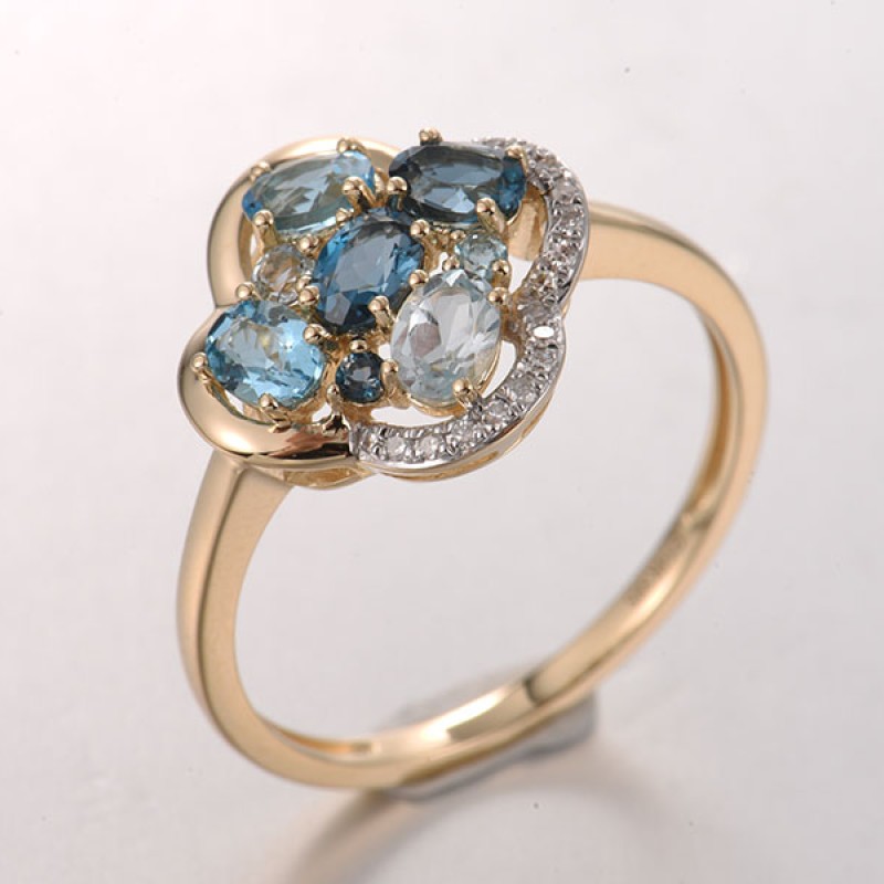 - Blue Topaz (Sky Blue) 2pc 0.263ct ,Blue Topaz (Swiss Blue) 3pc 0.468ct ,Diamond 18pc 0.054ct ,London Blue Topaz 3pc 0.522ct