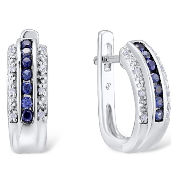Sterling Silver Earrings Blue Nano Cubic Zirconia,White Cubic Zirconia (E301075CRSZSL925)