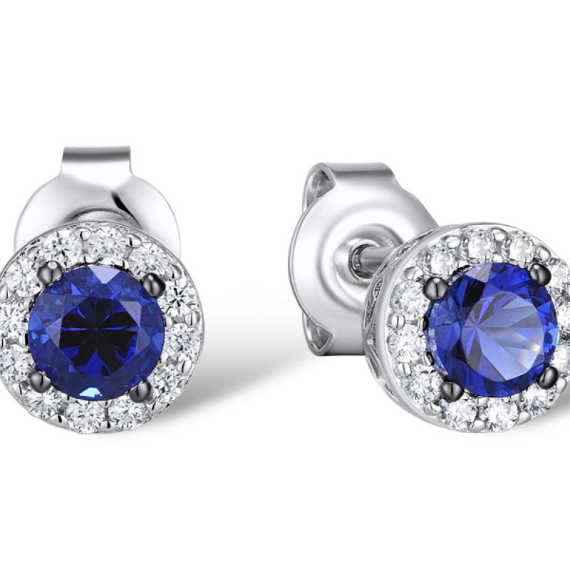 Sterling Silver w/ Black White Plating Earrings White Cubic Zirconia,Blue Glass (E301108BLGZSK925)