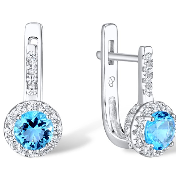 Sterling Silver Earrings Blue Glass,White Cubic Zirconia (E301116BLGZSL925)