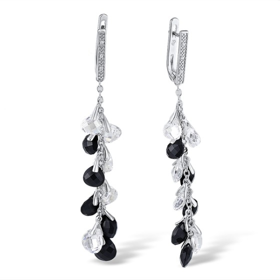 Sterling Silver Earrings Onyx,White Cubic Zirconia (E301122ONZSL925)