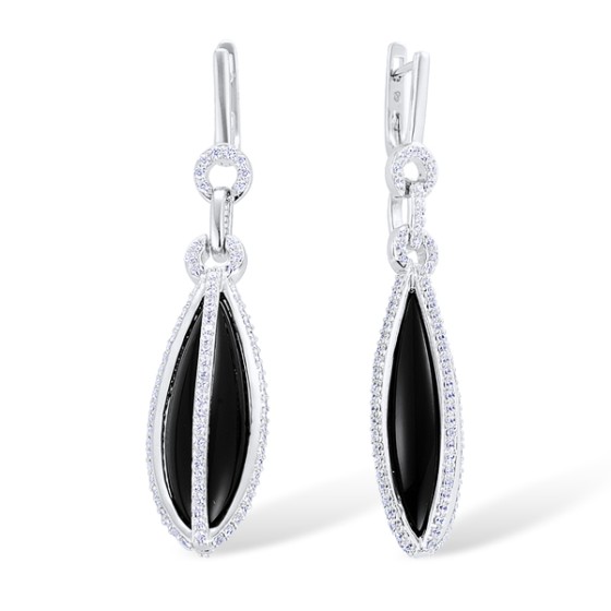 Sterling Silver Earrings Onyx,White Cubic Zirconia (E301124ONZSL925)